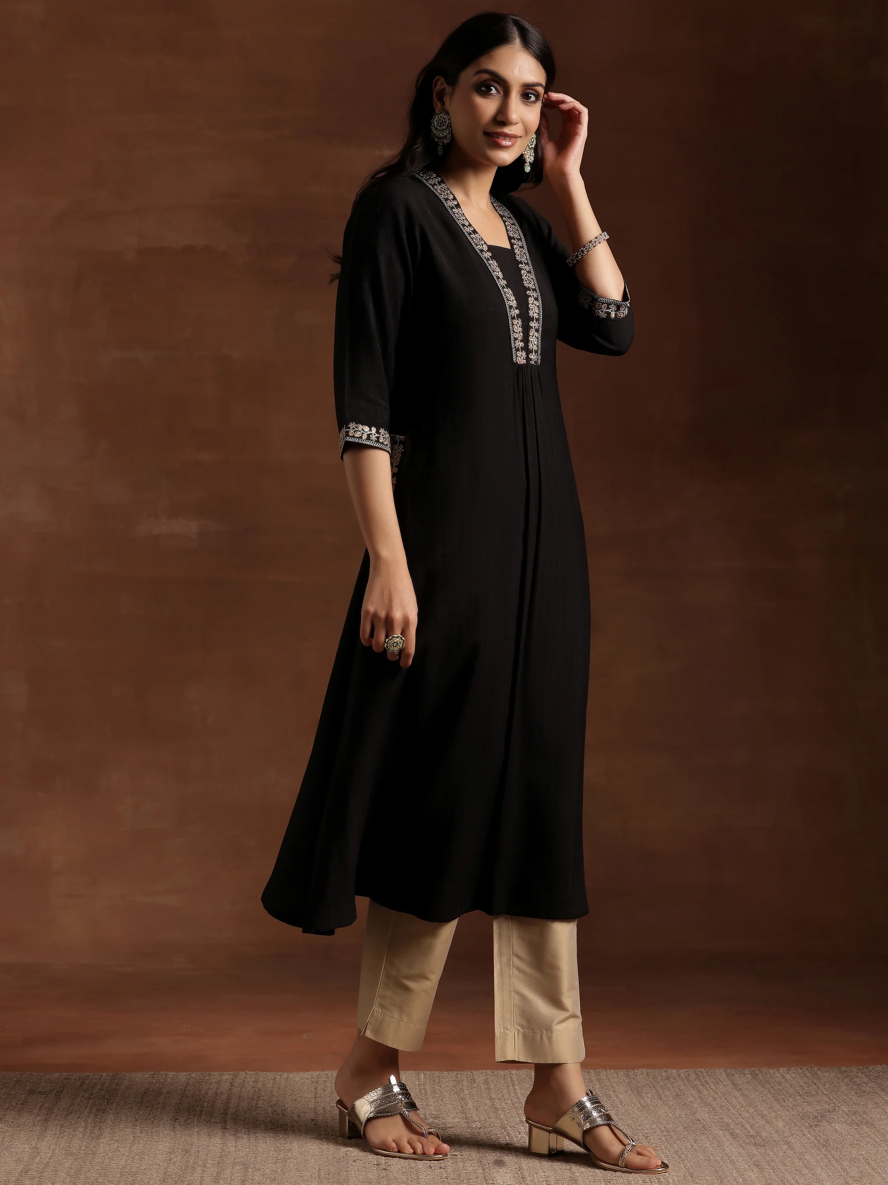 Black Yoke Design Silk A-Line Kurta